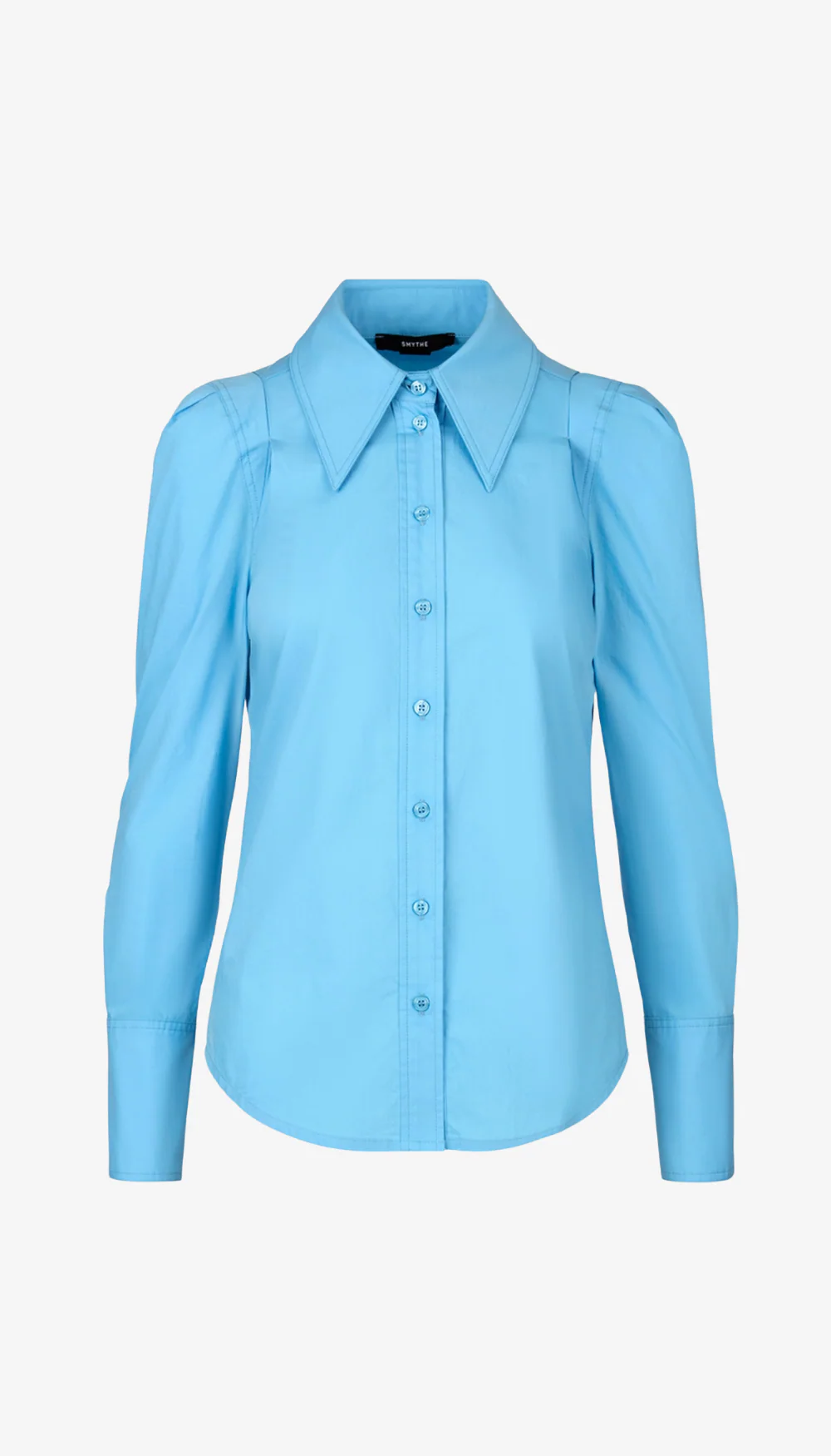Details: Moderately tailored, this modern take on a classic button-down features pleated shoulders and an exaggerated point collar. This garment fits true to size, take your usual size.