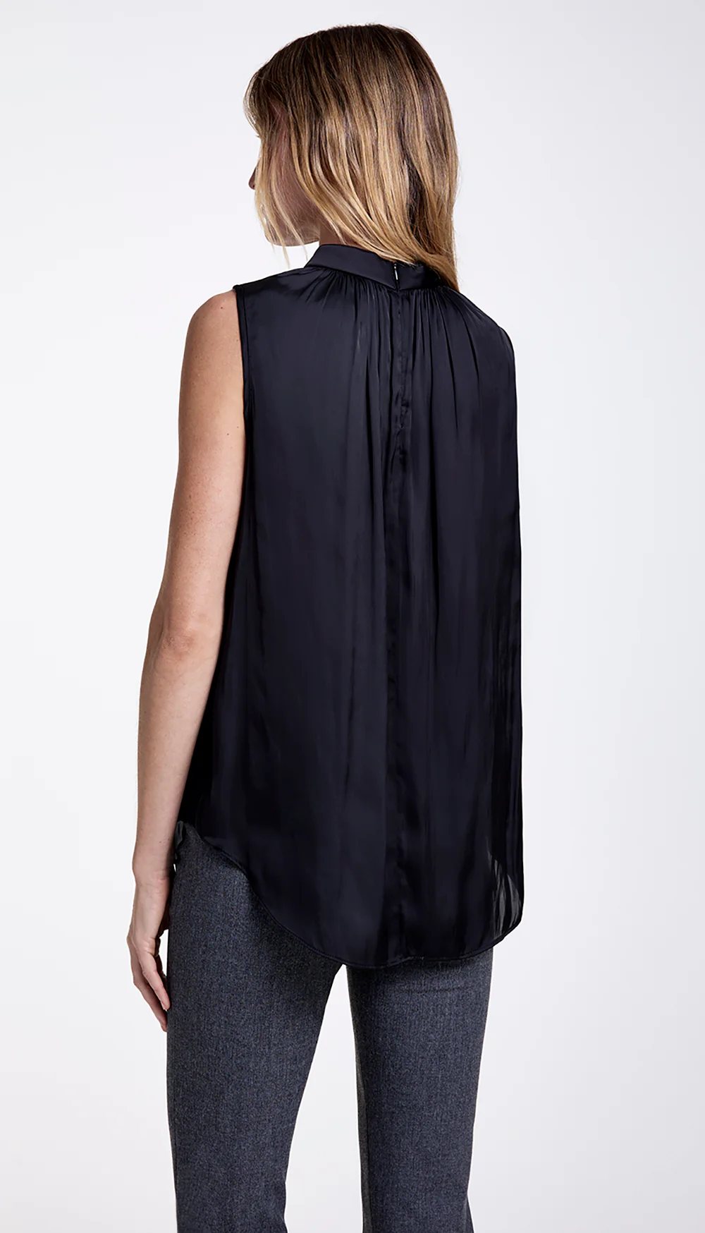 Details: Polished with a beautiful drape, this signature silhouette is sleeveless and features a lightly padded mock neck offset with delicate shirring. This garment fits true to size, take your usual size.